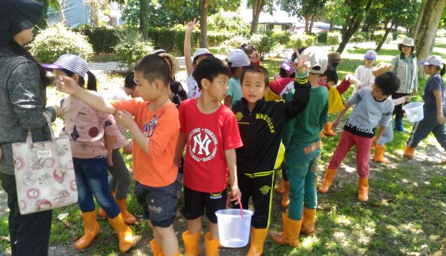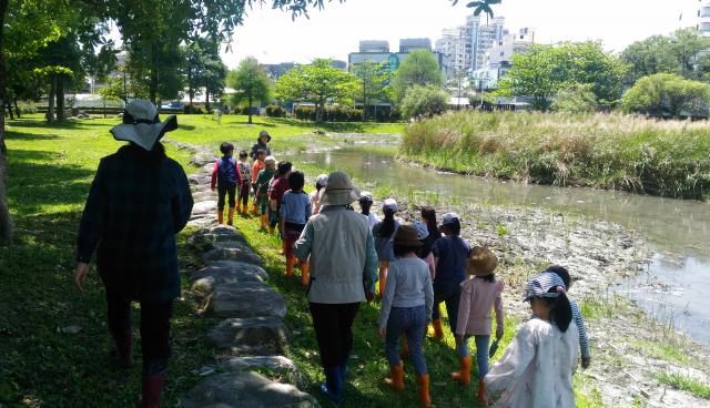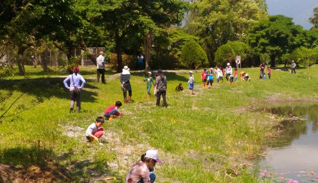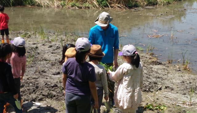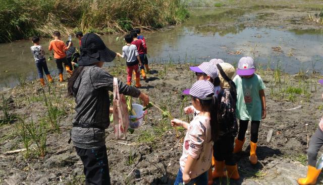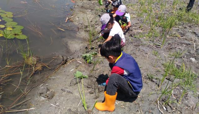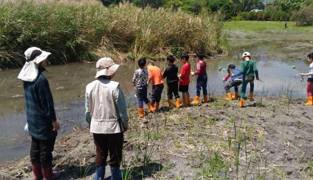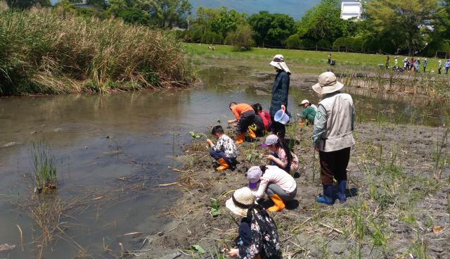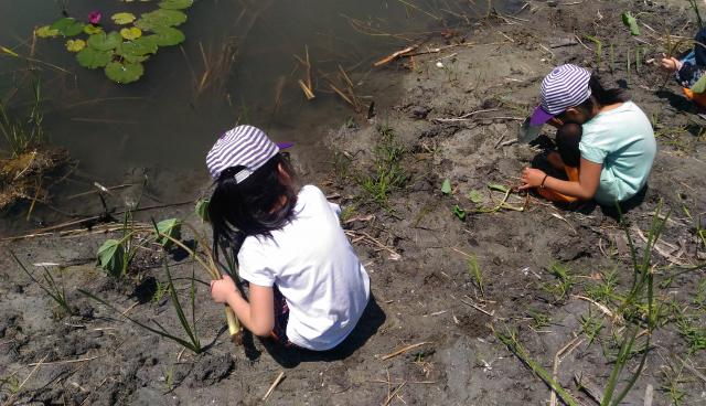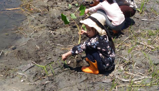 田蒲生態池水生植物栽種